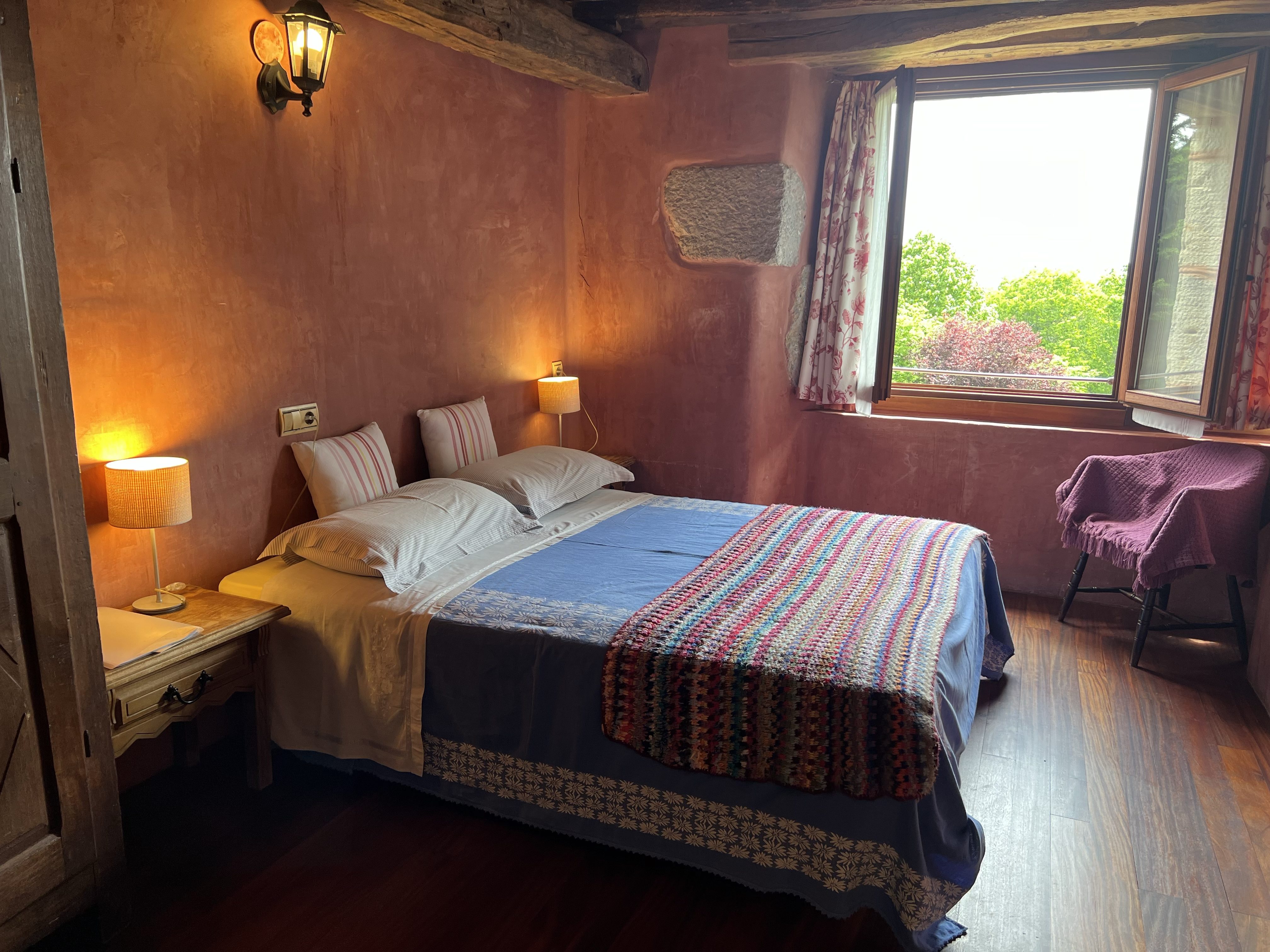 Construida con materiales ecológicos y siguiendo los principios de Bioconstrucción y Feng Shui, el cabecero está orientado al NordEste asegurando un descanso revitalizante, en conexión con la naturaleza, esta habitación te invita a una experiencia de descanso profundo.